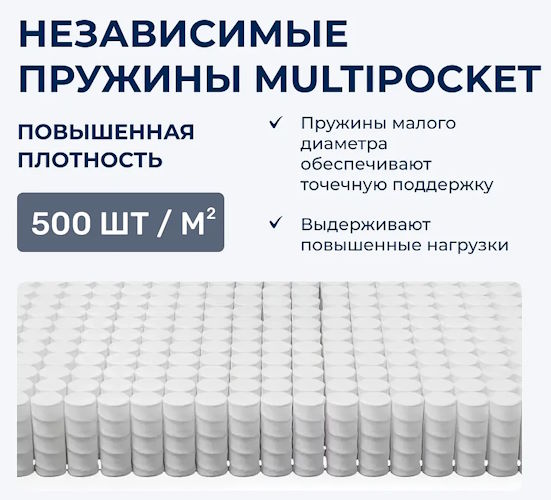 Подпись к товару Max. вес на спальное место - 180 кг, С независимыми пружинами Multi Pocket S1000, любой размер матраса