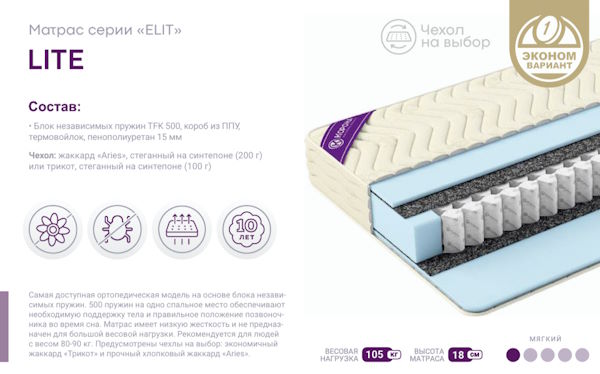 | Высота матраса | 18 см |