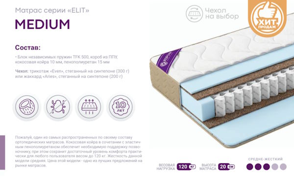 | Подпись к товару | Max. вес на спальное место - 120 кг, Блок независимых пружин TFK, любой размер матраса |