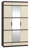 Трехстворчатый шкаф разделен на два отделения. Одно отделение укомплектовано шестью полками для белья, второе - двумя стационарными полками (сверху и снизу) и штангой для одежды. Центральный фасад шкафа укомплектован зеркалом.