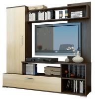 Компактная и вместительная медиа стенка в цветовой комбинации на выбор: дуб крафт золотой/белый или венге/дуб молочный. Материал ЛДСП. Размер ниши под ТВ 1101*728 мм. Собирается только в одном исполнении.
