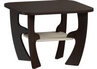 Очень компактный журнальный столик "Маджеста-5", способный дополнить интерьер практически любой гостиной. Его квадратная столешница со скруглёнными углами хорошо гармонирует с небольшой полочкой и плоскими фигурными ножками. Все детали изготавливаются из ДСП, их поверхность имитирует массив натурального дерева. Благодаря оригинальному сочетанию расцветоки красивой фактуре поверхности, столик смотрится современно и привлекательно.